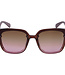 Onze nieuwste zonnebrillen collectie is binnen! Bordeauxrode zonnebril met groot montuur en donkergekleurde glazen.