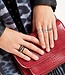 Verstelbare ring met ontwerp dat in het midden kruist en is perfect te combineren met onze andere zilverkleurige ringen, zoals onze Heart Statement Ring!
