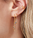 Goudkleurige oorbellen met een dun kettinkje en een bliksem bedel. De oorbellen zijn van roestvrij staal gemaakt en verkleuren daarom niet!