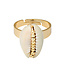 Als je net zo geobsedeerd bent door schelpsieraden als wij, zul je gek zijn op deze verstelbare ring met een grote schelp en een rij met kleine gold plated bolletjes!