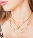 Sieraden met vlinders zijn helemaal in. Aan dit kettinkje hangen vijf kleine vlindertjes met een mooie binnenkant van Kristal!