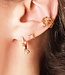 Dubbele earcuff met twee kleine sterren en hangende ster.